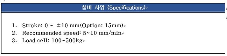 2. 샘플에 따른 지그는 제작이 필요하며 로드셀은 샘플 용량에 맞춰 변경이 가능합니다.