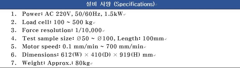 본 장비는 파이프 형태의 샘플을 압축 시험할 수 있으며 샘플 압축 시 미끄러지지 않도록 고안된 전용 지그가 설치되어 있습니다.