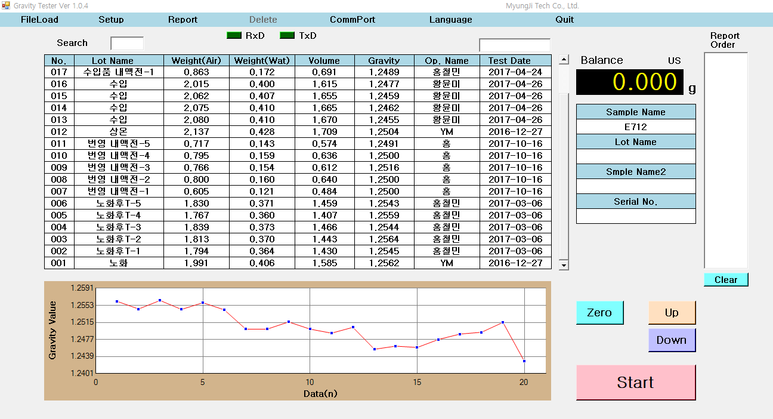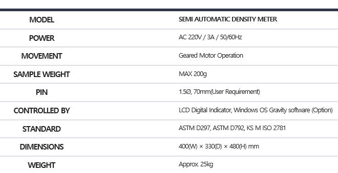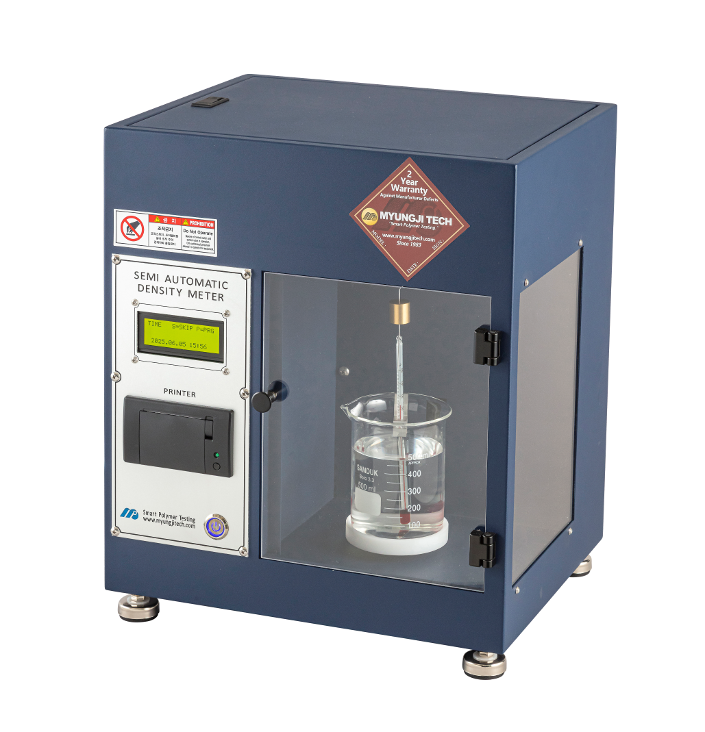 KS M ISO 2781(가황고무-밀도측정방법)을 기반으로 제작된 명지테크의 비중계는 주어진 온도에서